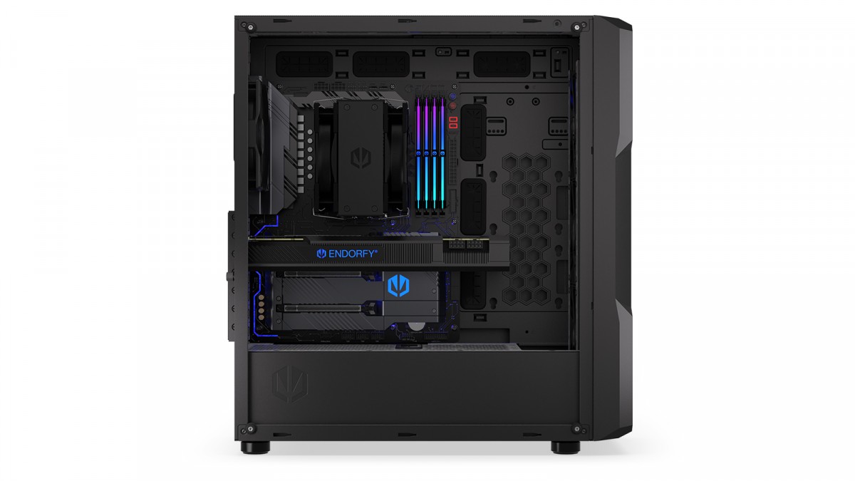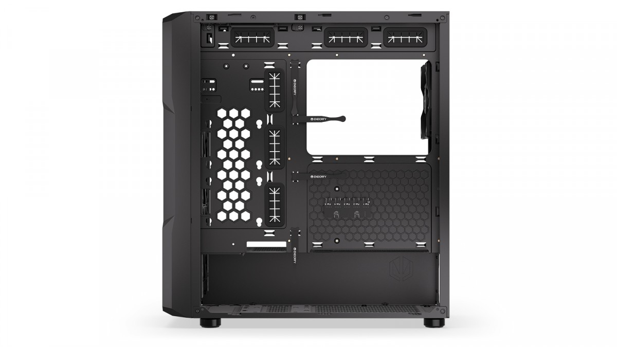 Wnętrze ENDORFY Regnum 400 Air jest przewiewne jak pokój wypełniony wiatrakami. Porównanie jest celowe, bo obudowa z frontem z drobnej siatki mieści aż 8 wentylatorów 4 czarne Stratusy PWM dajemy Ci na dobry początek.