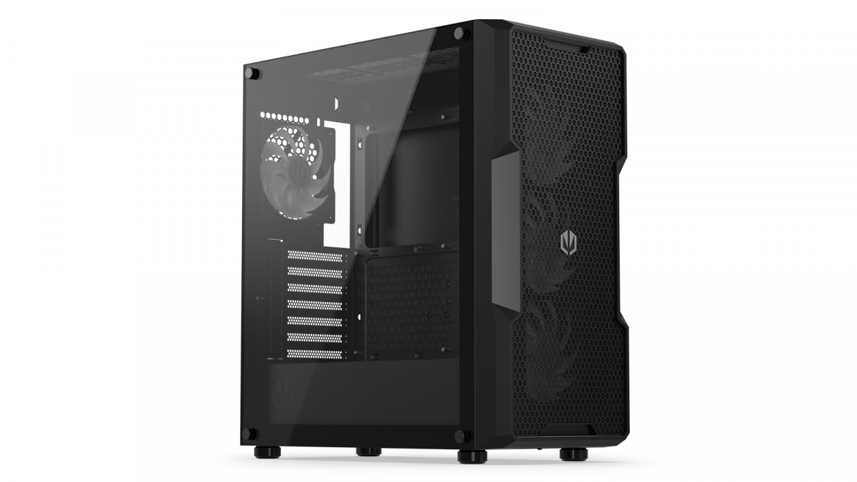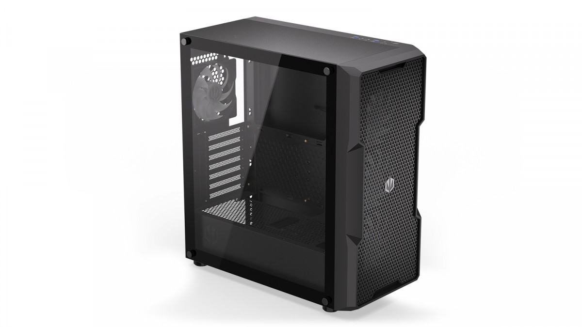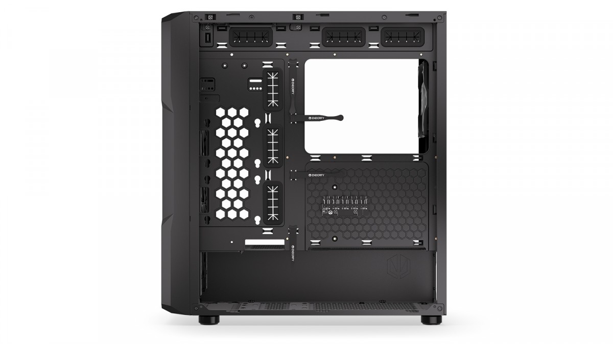 ENDORFY Regnum 400 ARGB to pojemna (472 x 442 x 220 mm) zbroja obudowa z podświetleniem ARGB, o której marzą Twoje komponenty. Pomieści wszystko, czego potrzebujesz do wygrywania wystarczy zajrzeć do środka przez bok z hartowanego szkła, żeby się o tym przekonać.