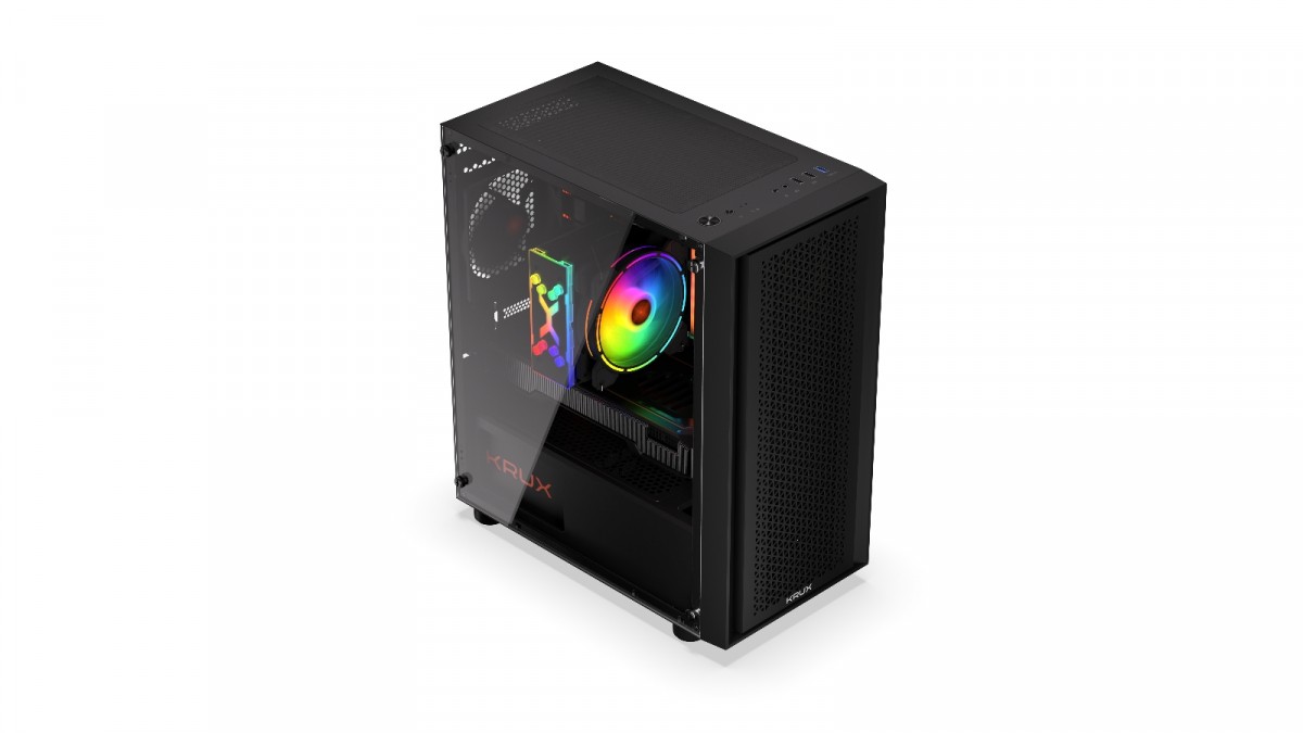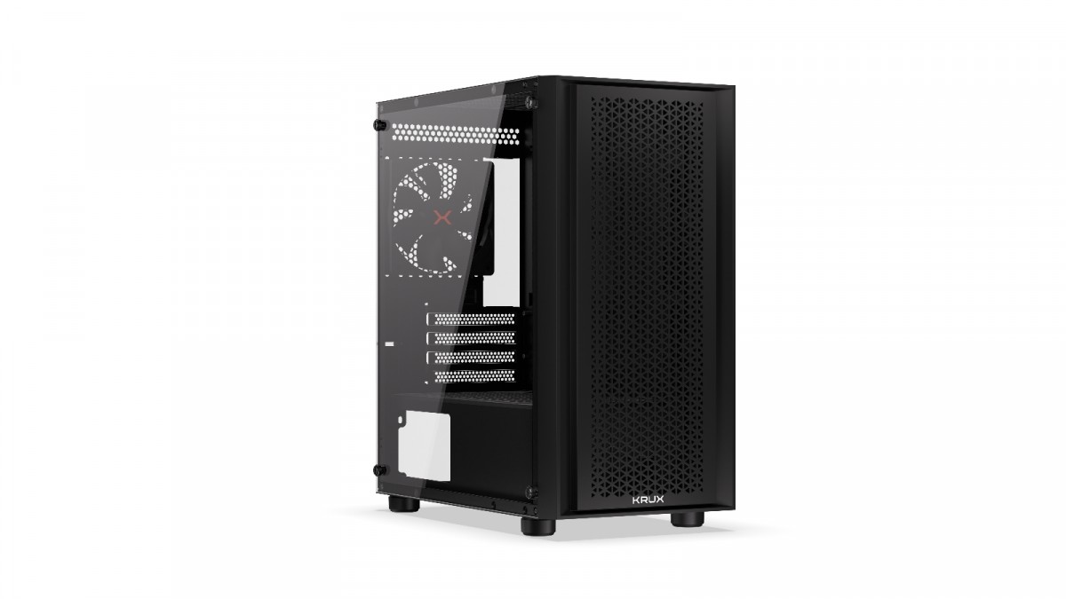 Krux Scor główne cechy: Niewielki rozmiar Wentylator w zestawie Szklany panel boczny