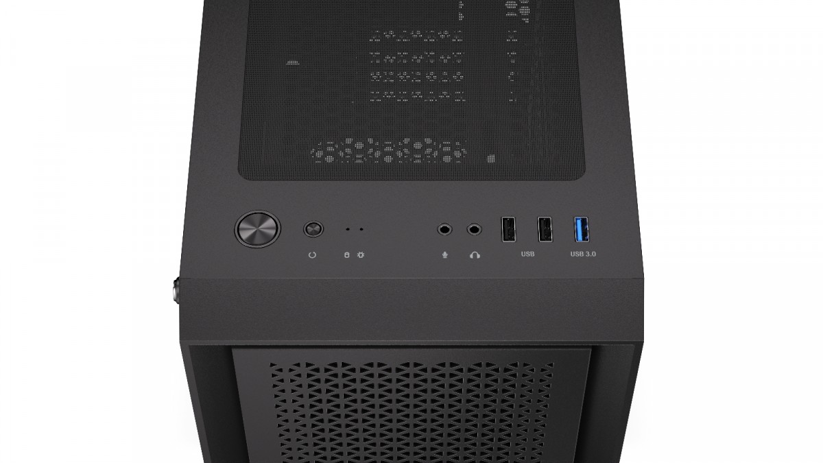 Złącza na przednim panelu: 2 x USB 2.0, 1 x USB 3.0, 1 x słuchawki, 1 x mikrofon