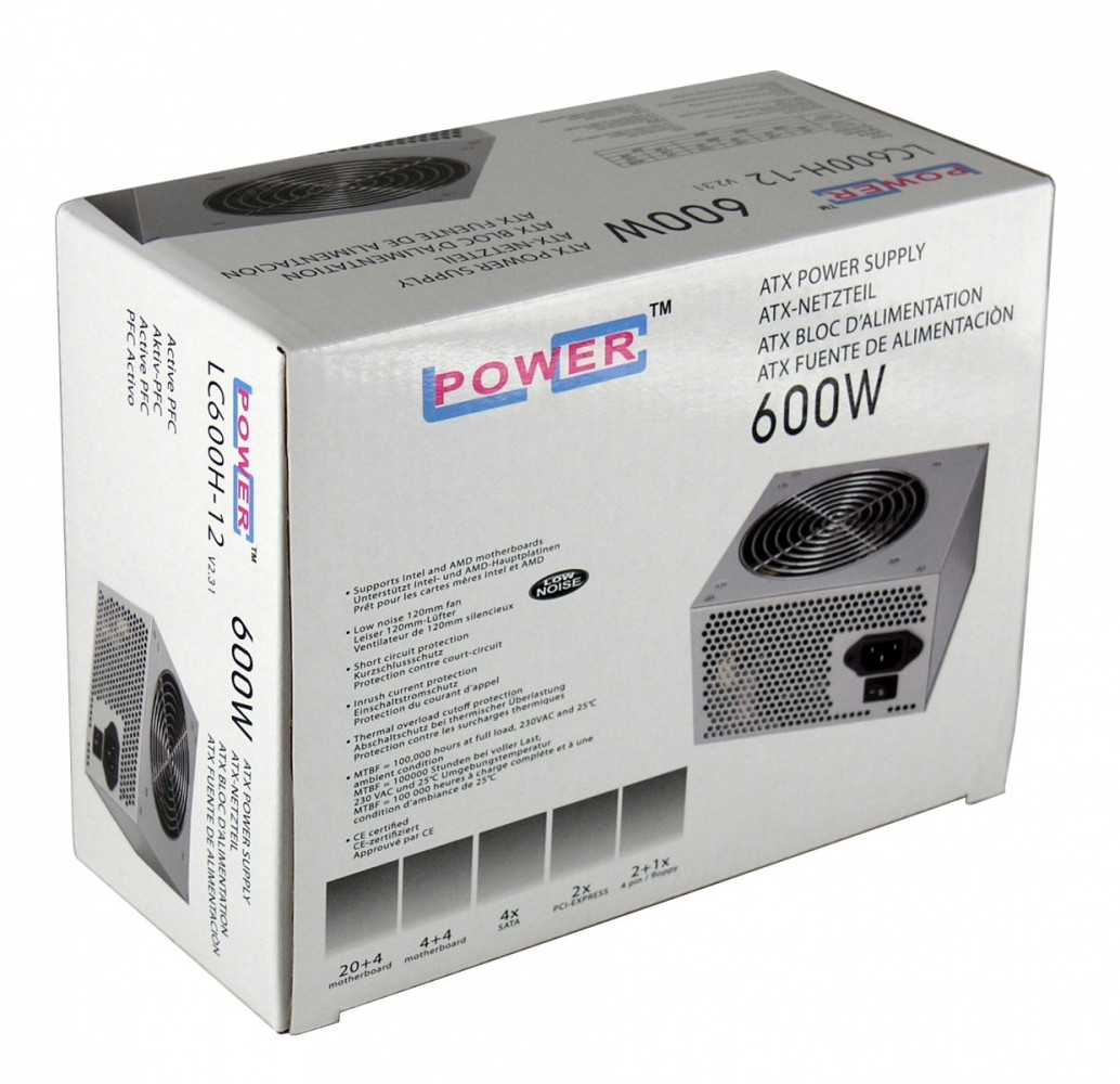 ZASILACZ 600W LC600H-12 V2.31 120mm 4x SATA 2x PATA 2x PCIe Active PFC