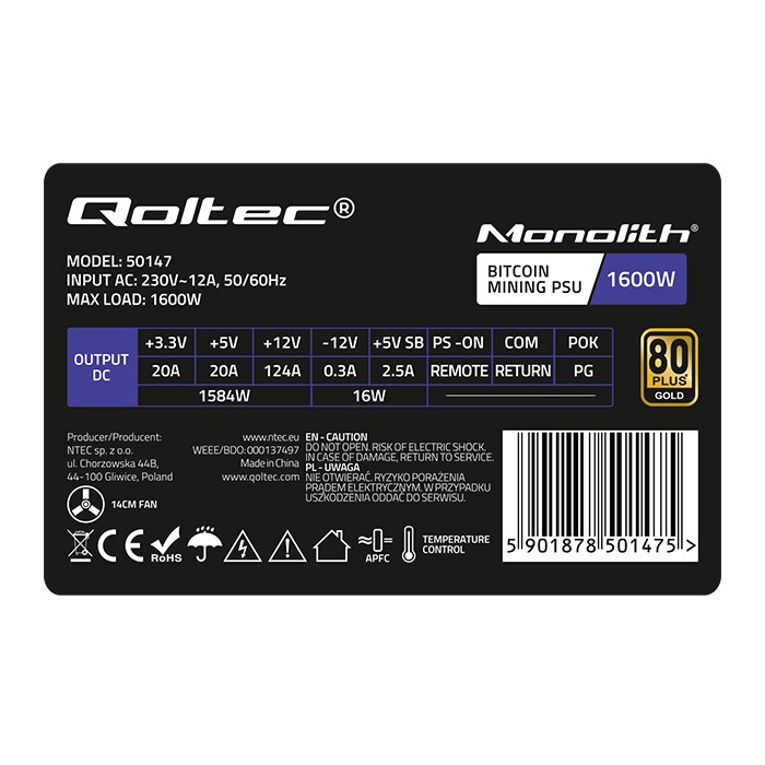 Zasilacz ATX | 1600W | 80 Plus Gold | Bitcoin Miner