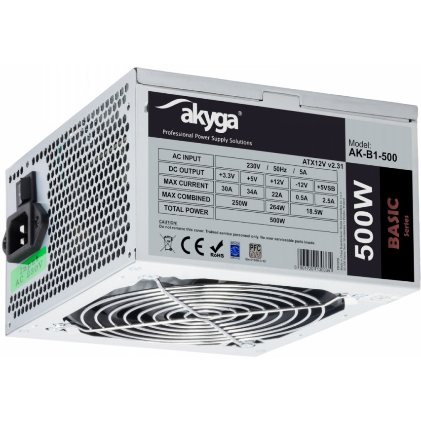 Zasilacz Akyga AK-B1-500 serii Basic o mocy 500W, to jeden z podstawowych zasilaczy ATX Akyga, przeznaczonych do zasilania komputerów stacjonarnych.