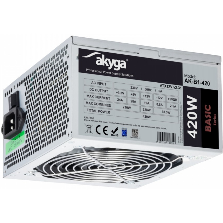 Zasilacz Akyga AK-B1-420 serii Basic o mocy 420W, to jeden z podstawowych zasilaczy ATX Akyga, przeznaczonych do zasilania komputerów stacjonarnych.