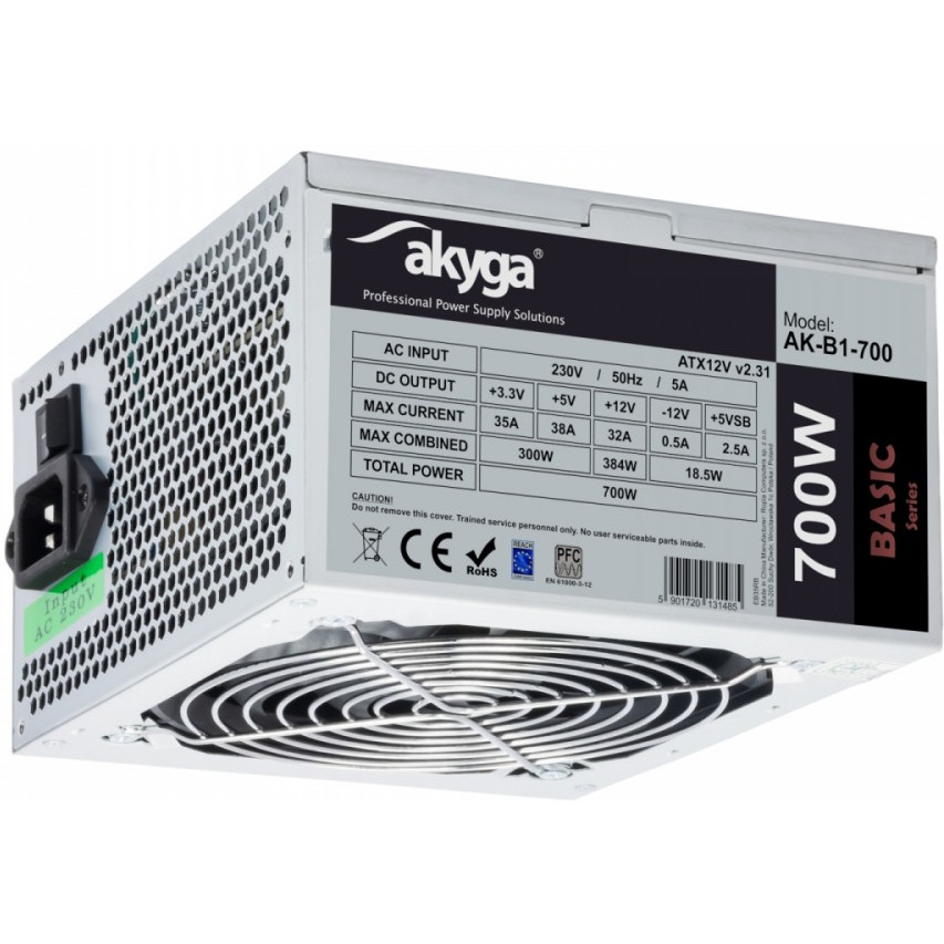 Zasilacz Akyga AK-B1-700 serii Basic o mocy 700W, to jeden z podstawowych zasilaczy ATX Akyga, przeznaczonych do zasilania komputerów stacjonarnych.