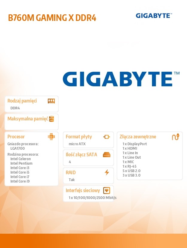 Płyta główna B760M GAMING X DDR4 s1700 DDR4 DP/HDMI mATX