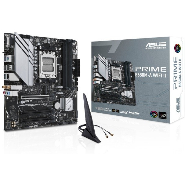 Płyta główna AMD B650 Micro-ATX, DDR5, obsługa PCIe 5.0 M.2, Realtek 2.5Gb Ethernet, Wi-Fi 6, DisplayPort, VGA, HDMI, SATA 6 Gb/s, porty USB 3.2 Gen 2, przedni USB 3.2 Gen 1 Type-C, BIOS FlashBack, Aura Sync Gotowy na zaawansowany komputer AI: Zaprojektowany z myślą o przyszłości obliczeń AI, z mocą i łącznością potrzebną do wymagających aplikacji AI Gniazdo AM5 dla procesorów stacjonarnych AMD Ryzen Ultraszybka łączność: Wi-Fi 6, M.2 PCIe 5.0, Realtek 2.5Gb Ethernet, porty USB 3.2 Gen 2, przedni USB 3.2 Gen 1 Type-C ASUS OptiMem II: Ostrożne prowadzenie ścieżek i przelotek, a także optymalizacja warstwy uziemienia w celu zachowania integralności sygnału w celu lepszego podkręcania pamięci Kompleksowe chłodzenie: radiator VRM, radiator PCH, hybrydowe nagłówki wentylatorów i wentylator Xpert 2+ Oświetlenie Aura Sync RGB: Wbudowane adresowalne nagłówki Gen 2 i nagłówek Aura RGB do pasków LED RGB, łatwo synchronizowane ze sprzętem obsługującym Aura Sync