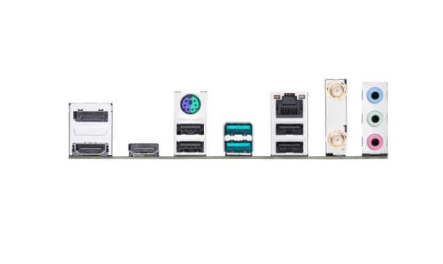 Złącza zewnętrzne: 4 x USB 2.0, 2 x SMA, 2 x USB 3.1, 1 x PS/2 Klawiatura/Mysz Combo, 1 x DisplayPort, 2 x HDMI, 1 x Line In (błękitny), 1 x Line Out (zielony / headphones), 1 x MIC (różowy / microphone), 1 x RJ-45