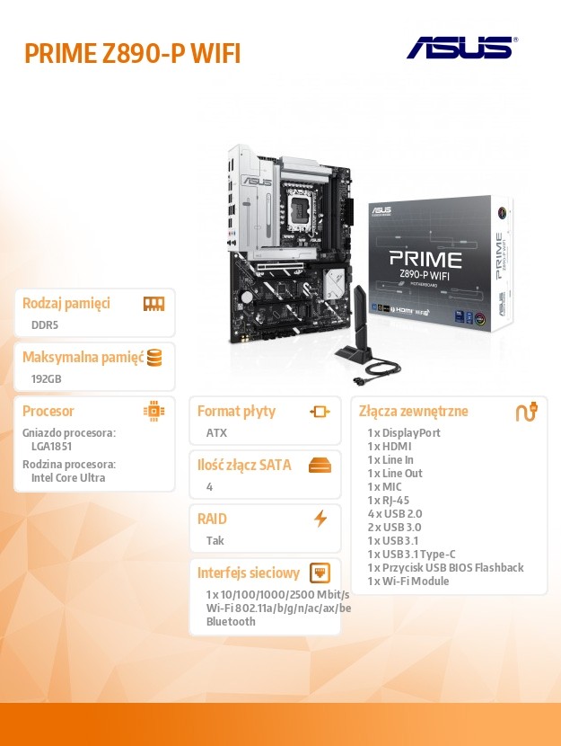 P³yta g³ówna PRIME Z890-P WIFI S1851 4DDR5 HDMI/DP/TB4 ATX /90MB1I70-M0EAY0