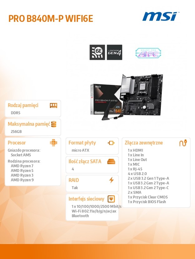 Płyta główna PRO B840M-P WIFI6E AM5 4DDR5 ATX