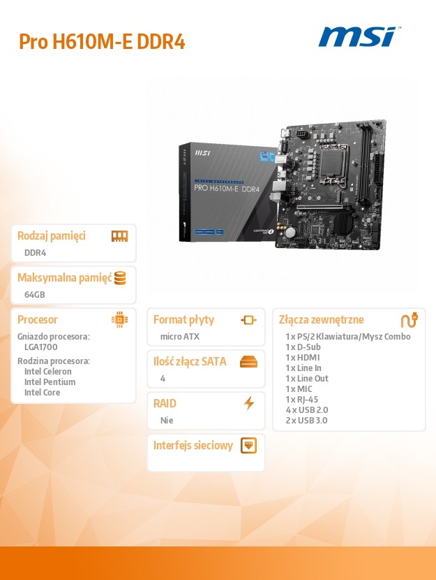 P³yta g³ówna PRO H610M-E s1700 DDR4 HDMI M.2 mATX
