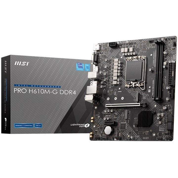 Płyta główna PRO H610M-G DDR4 Obsługuje procesory Intel Core 12. generacji, Pentium Gold i Celeron dla gniazda LGA 1700 Obsługuje pamięć DDR4, do 3200 (MAKS.)...