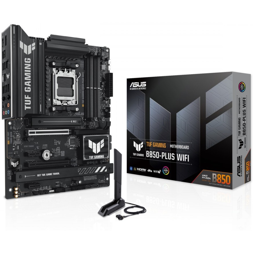 Płyta główna ASUS TUF GAMING B850-Plus WiFi wykorzystuje wszystkie istotne elementy najnowszych procesorów AMD Ryzen i łączy je z funkcjami gotowymi do grania i sprawdzoną trwałością. Zaprojektowana z komponentów klasy wojskowej, ulepszonego rozwiązania zasilania i wszechstronnego systemu chłodzenia, ta płyta główna przekracza oczekiwania, oferując solidną i stabilną wydajność podczas maratonów gier. Płyty główne TUF GAMING przechodzą również rygorystyczne testy wytrzymałościowe, aby mieć pewność, że poradzą sobie w warunkach, w których inne mogą zawieść. Platforma ta zapewnia moc i łączność, których wymagają zaawansowane aplikacje komputerowe AI.