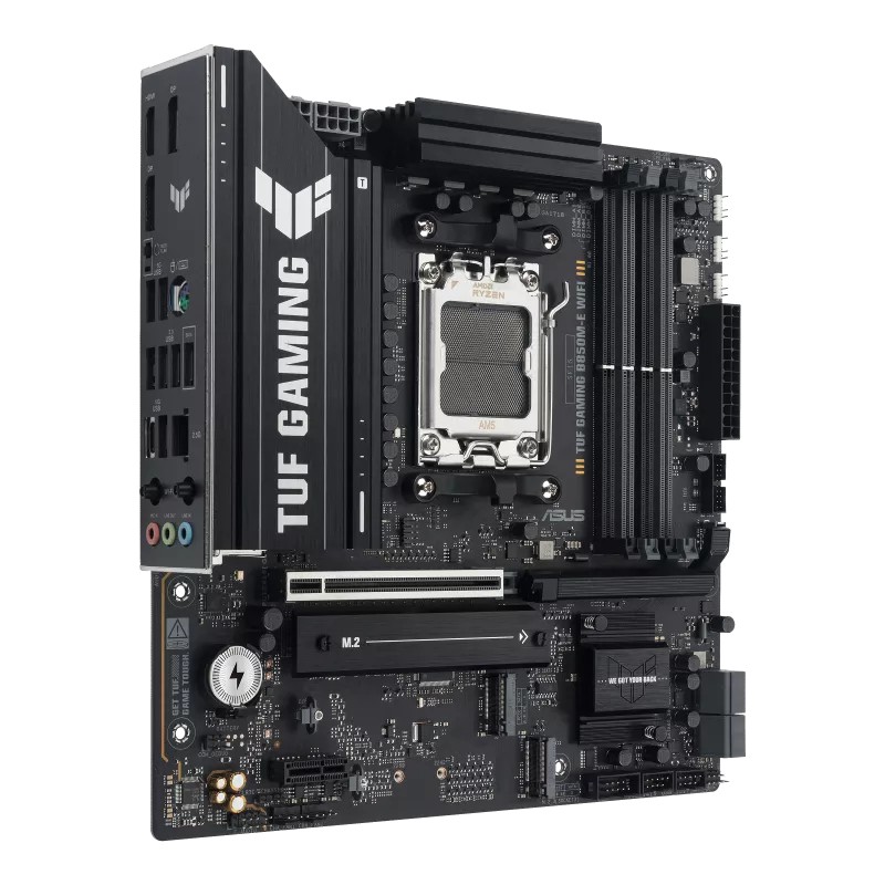 ASUS TUF GAMING B850M-E WIFI łączy wszystkie kluczowe elementy najnowszych procesorów AMD Ryzen i łączy je z funkcjami gotowymi do gier oraz sprawdzoną trwałością. Zaprojektowana z komponentów klasy militarnej, z ulepszonym układem zasilania i kompleksowym systemem chłodzenia, ta płyta główna przewyższa oczekiwania dzięki stabilnej i niezawodnej pracy podczas długich sesji gamingowych. Płyty główne TUF GAMING przechodzą rygorystyczne testy wytrzymałości, aby zapewnić działanie w warunkach, w których inne mogą zawodzić. Ta platforma dostarcza moc i łączność, których wymagają zaawansowane aplikacje AI PC.