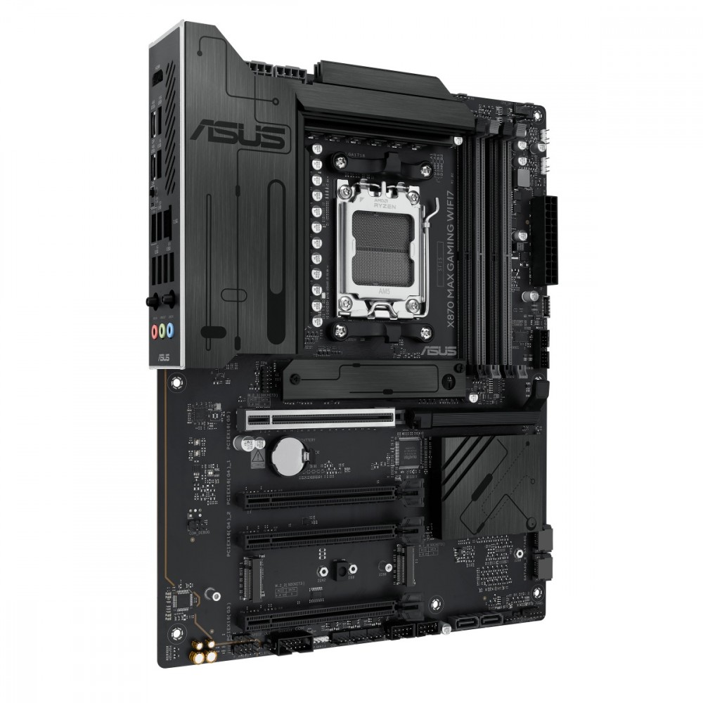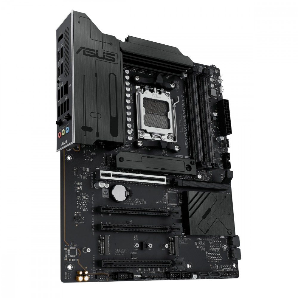 Płyty główne ASUS z serii X870 zostały profesjonalnie zaprojektowane, aby uwolnić pełny potencjał procesorów AMD Ryzen z serii 9000. Oferująca solidną konstrukcję zasilania, kompleksowe rozwiązania chłodzenia i inteligentne opcje dostrajania, płyta główna X870 MAX GAMING WIFI7 zapewnia użytkownikom i osobom samodzielnie budującym komputery szereg optymalizacji wydajności dzięki intuicyjnym funkcjom oprogramowania i oprogramowania układowego. Został zaprojektowany tak, aby był gotowy na obsługę komputera PC z zaawansowaną sztuczną inteligencją, oferując moc i łączność potrzebne w wymagających aplikacjach AI.