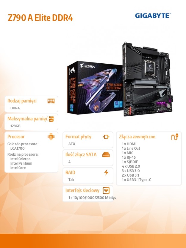 Płyta główna Z790 AORUS ELITE DDR4 S1700 4DDR4 USB/M.2 ATX