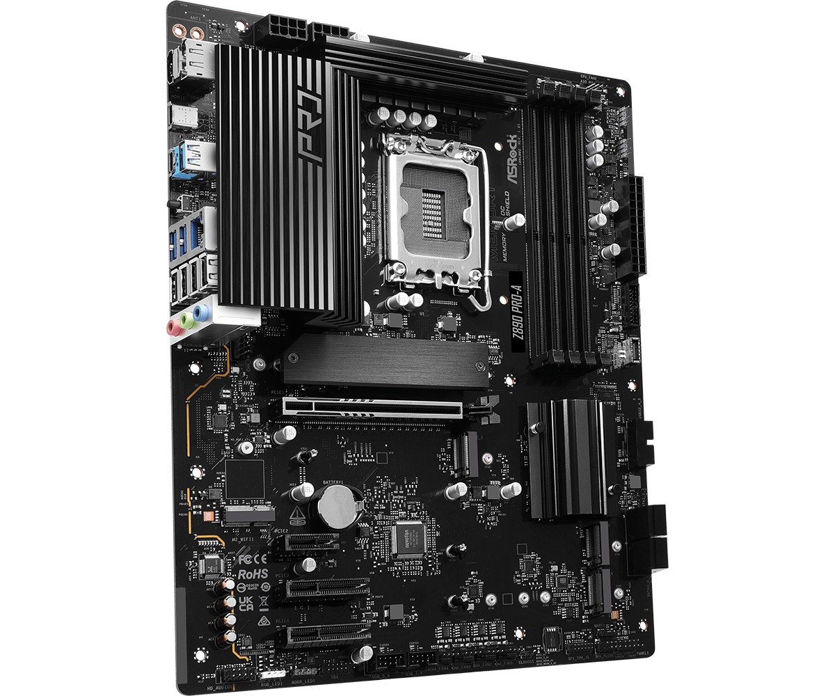 Seria Pro-A została zaprojektowana z myślą o zwiększonej stabilności, trwałości i wydajności, oferuje niezawodną wydajność, przyjazne dla użytkownika funkcje i opływowy wygląd, dzięki czemu idealnie nadaje się do codziennych potrzeb komputerowych. Obsługuje procesory Intel Core Ultra (seria 2) (LGA1851) 16+1+1+1+1 faza zasilania, Dr.MOS dla VCore+GT 4 x DDR5 DIMM Obsługuje Dual Channel, do 8666+ (OC) 1 PCIe 5.0 x16, 2 PCIe 4.0 x4, 1 PCIe 4.0 x1, 1 M.2 Key E dla WiFi Opcje wyjścia graficznego: 1 HDMI, 1 DisplayPort, 1 Thunderbolt 4 Type-C Kodek audio Realtek ALC897 7.1 CH HD 4 SATA3 1 Blazing M.2 (PCIe Gen5 x4) 2 Hyper M.2 (PCIe Gen4 x4) 1 Hyper M.2 (PCIe Gen4 x4 i SATA3) 1 Thunderbolt 4 Type-C (tył) 2 USB 3.2 Gen2x2 Type-C (1 z tyłu, 1 z przodu), 1 USB 3.2 Gen2 Type-A (z tyłu), 6 USB 3.2 Gen1 (2 z tyłu, 4 z przodu), 8 USB 2.0 (4 z tyłu, 4 z przodu) Realtek 2.5G LAN Obsługuje BIOS Flashback, Memory OC Shield, Durable Caps o pojemności 1000uF