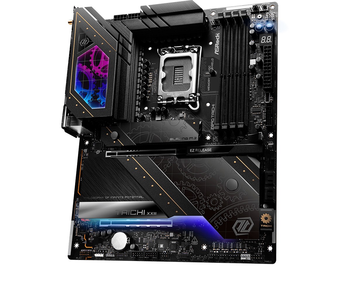 Flagowa płyta główna serii Taichi charakteryzuje się najwyższej klasy specyfikacją sprzętową, solidną konstrukcją zasilania, Thunderbolt 4 Type-C i funkcjonalnością przyjazną dla majsterkowiczów. Została stworzona dla graczy high-end, oferując luksusową estetykę i wysoką wydajność.