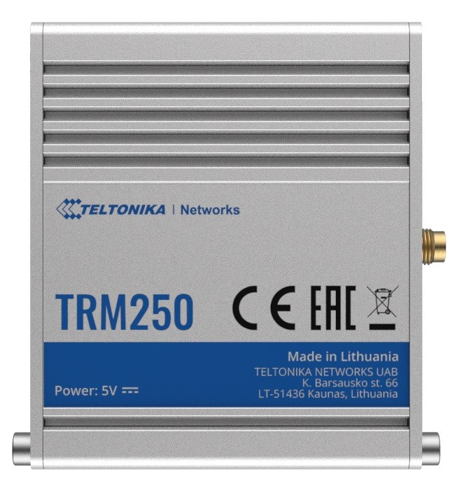 TRM250 posiada interfejs USB, wytrzymałą aluminiową obudowę i zewnętrzną antenę dla lepszego pokrycia sygnału.
