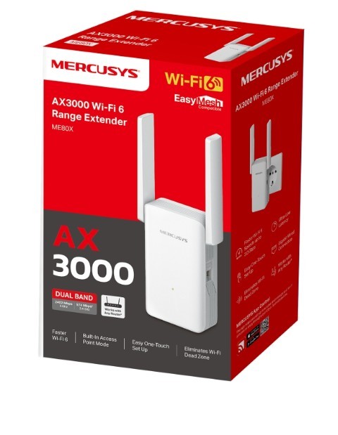 Wzmacniacz sieci bezprzewodowej uniwersalny Mercusys AX3000 Wi-Fi ME80X