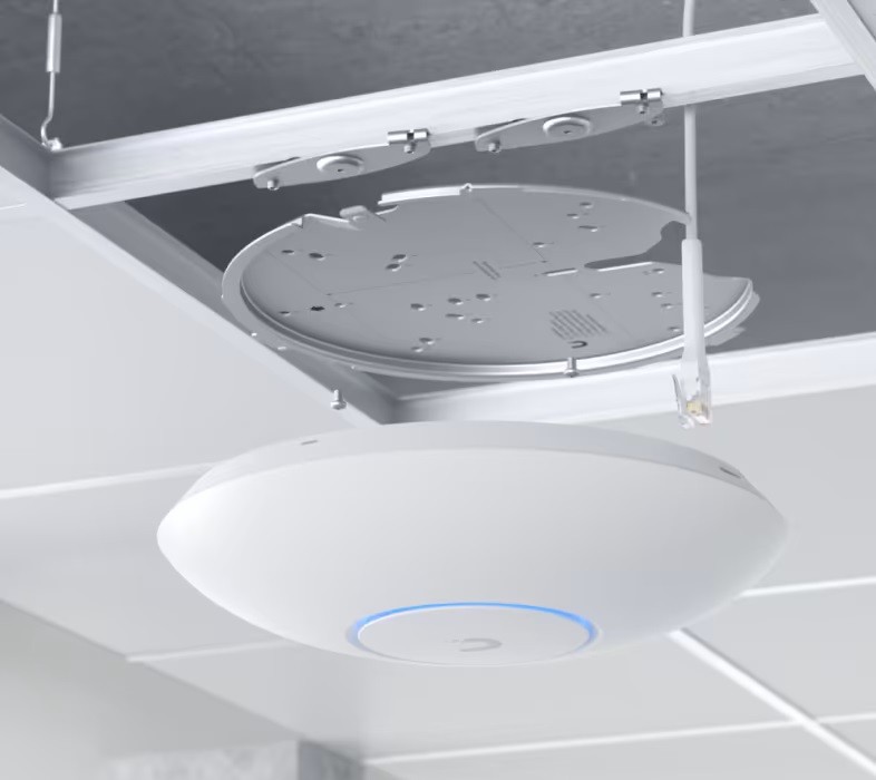Montowany na suficie punkt dostępowy Wi-Fi 7 z 8 strumieniami przestrzennymi, obsługą 6 GHz i dedykowanym silnikiem skanowania widmowego zapewniającym Wi-Fi pozbawione zakłóceń w wymagających środowiskach o dużej skali.