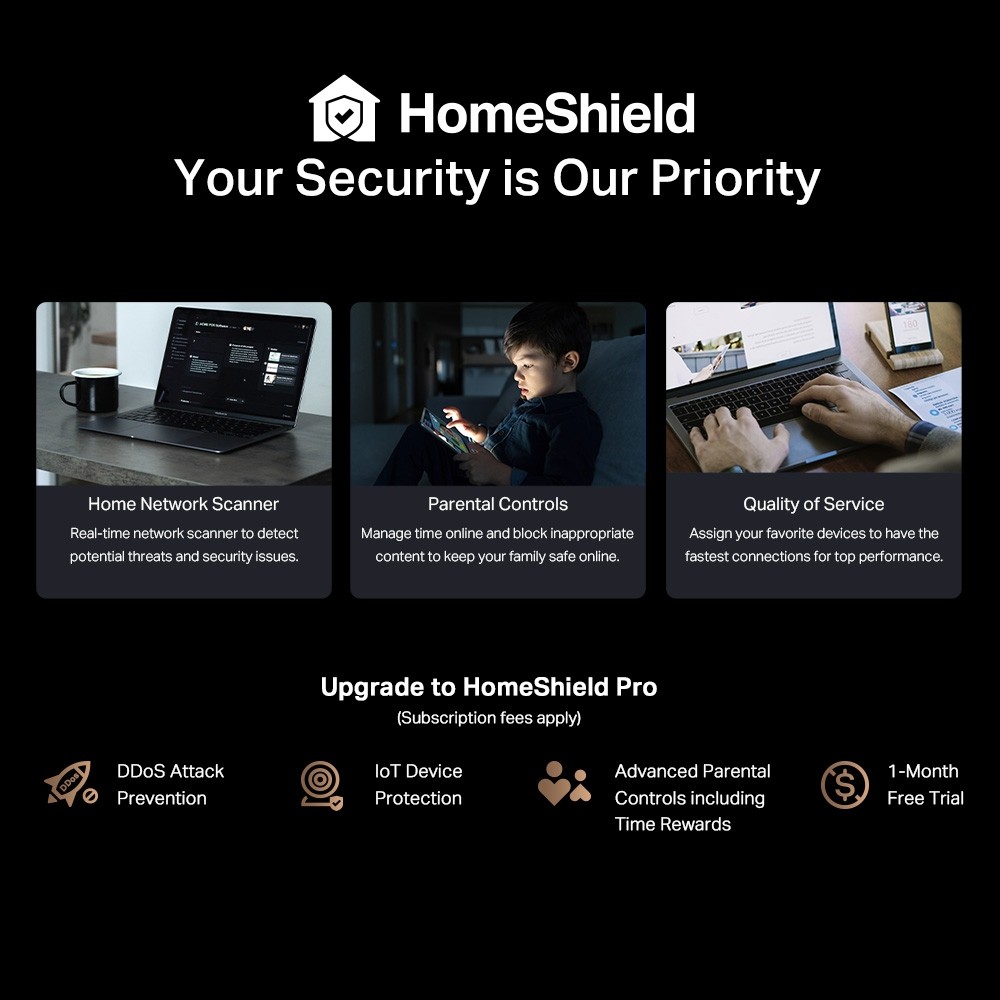 Bezpieczeństwo: Zapora sieciowa SPI Kontrola dostępu Powiązanie IP i MAC Brama warstwy aplikacji HomeShield Security Ochrona IoT w czasie rzeczywistym Blokowanie złośliwych witryn System ochrony przed włamywaczami Zapobieganie atakom DDoS Domowy skaner sieciowy