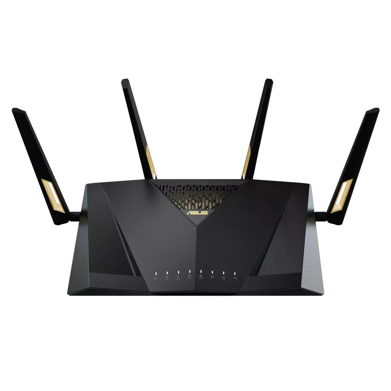 RT-AX88U Pro to dwuzakresowy router WiFi 4x4, który zapewnia pasmo 160 MHz i 1024-QAM dla znacznie szybszych połączeń bezprzewodowych. Przy całkowitej prędkości sieciowej około 6000 Mb/s - 1148 Mb/s w paśmie 2,4 GHz i 4804 Mb/s w paśmie 5 GHz - RT-AX88U Pro jest 2,3 razy szybszy niż dwuzakresowe routery 802.11ac 4x4.