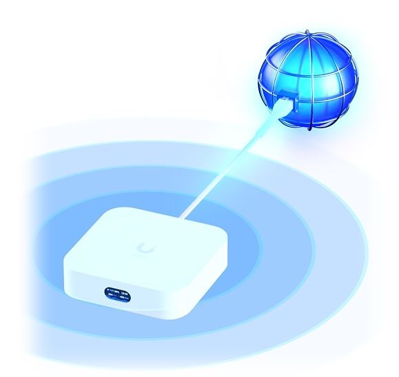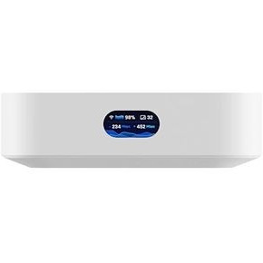 Kompaktowa bramka UniFi Cloud oraz punkt dostępowy Wi-Fi 6 to efektywne rozwiązania obsługujące UniFi Network. Mogą zasilać całą sieć lub pełnić funkcję punktu dostępowego, tworząc wydajną siatkę. Wbudowane WiFi6 (2x2 MIMO) Pokrycie pojedynczej jednostki o powierzchni 140 m (1500 ft). Ponad 60 podłączonych urządzeń WiFi (1) Port GbE RJ45 WAN (1) Port GbE RJ45 LAN do rozbudowy sieci Wyświetlacz stanu LCM o przekątnej 0,96 cala Zarządza maks. czterema + urządzeniami UniFi Network, gdy działa jako brama Zarządzane za pomocą UniFi Network 8.0.7 i nowszych wersji