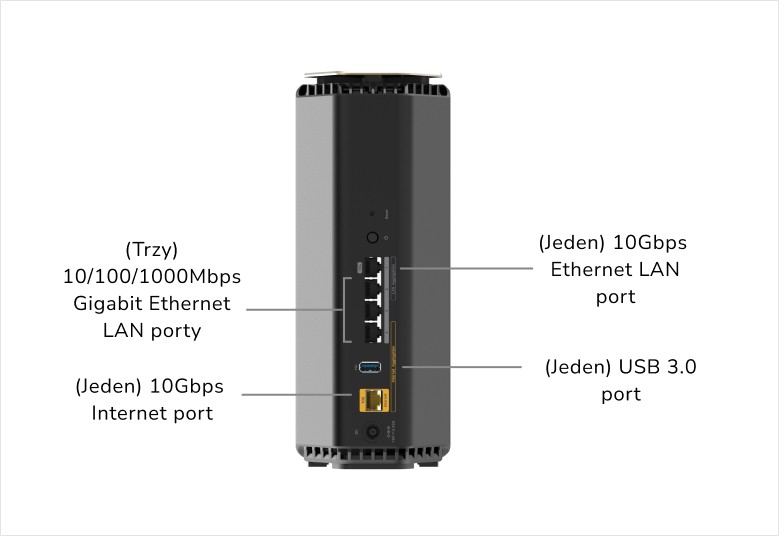 Bez względu na to, czy jest to kabel mulgti-gig, czy światłowodowy, skorzystaj z najszybszych prędkości dostępnych dziś i jutro dzięki portowi internetowemu 2,5 Gb Porty Ethernet 10 Gb/s i 1 Gb/s zapewniają niezrównaną szybkość i niezawodność połączeń przewodowych