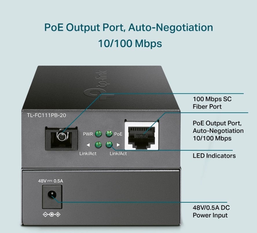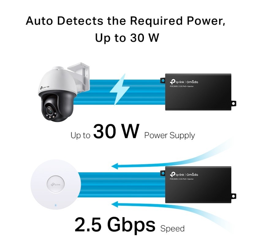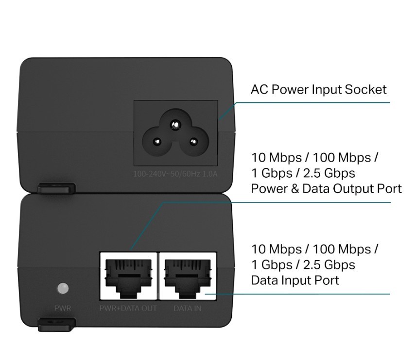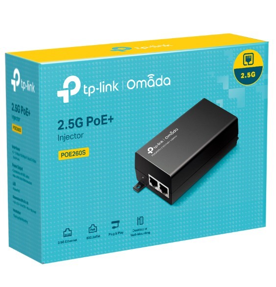 Injector Adapter Omada 2.5G PoE+ PORT: 1× 2.5G PoE Port, 1× 2.5G Non-PoE Port POE260S