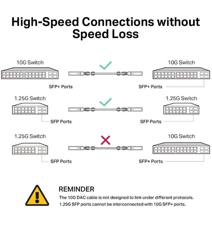 Pasywny przewód dwuosiowy o długości 3 metrów i konektory SFP+ po obydwu stronach sprawiają, że TL-SM5220-3M jest idealnym wyborem do łączenia przełączników w stacki lub łączenia stacków między sobą.