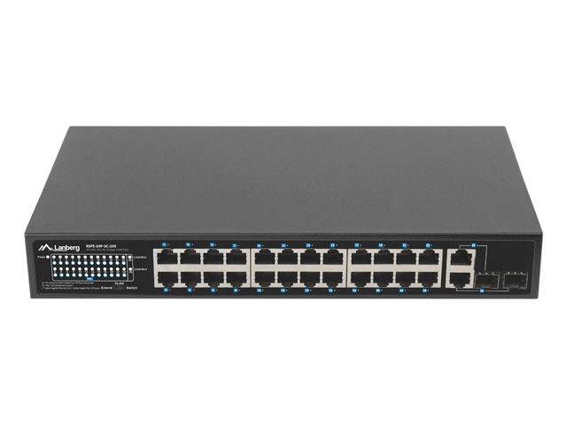 Przełączniki Lanberg posiadają funkcję umożliwiającą transmisję danych (max. 10 Mb/s) oraz zasilania PoE+ do 250 m na jednym odcinku kabla z funkcją odseparowania portów PoE między sobą (VLAN). Wystarczy przełączyć przycisk na pozycję "PoE+ Extend 250 m" na obudowie, aby zapewnić działanie na dłuższym odcinku i separację dla portów 1 ~ 24.