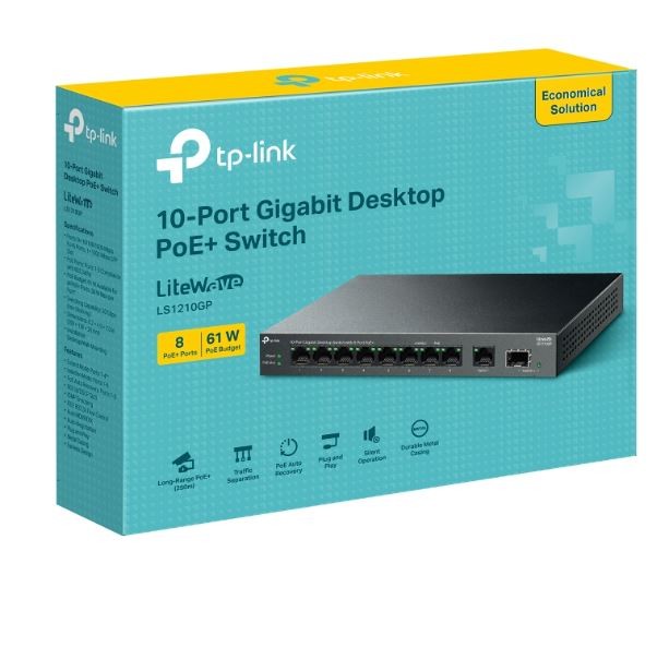 Pełne porty gigabitowe: 9× gigabitowych portów Ethernet RJ45 z automatycznym negocjowaniem i 1× gigabitowy port SFP zapewniają do 20 Gbps przepustowości przełączania. Budżet PoE 61 W: Osiem gigabitowych portów PoE+ zgodnych z 802.3af/at łatwo łączy i zasila urządzenia stacjonarne, takie jak kamery IP, punkty dostępowe i telefony IP za pomocą jednego kabla. Każdy port PoE obsługuje do 30 W mocy wyjściowej PoE. Do 250 m transmisji PoE: W trybie Extend, odległość transmisji PoE sięga do 250 m, co jest idealne do rozmieszczenia kamer dozorowych na dużych obszarach. Plug and Play: Wystarczy podłączyć i używać bez potrzeby konfiguracji. Cicha praca: Konstrukcja bez wentylatora zmniejsza zużycie energii i zapewnia cichą pracę, idealną dla domów lub firm wrażliwych na hałas. Niezawodna konstrukcja sprzętu: Wytrzymała metalowa obudowa i konstrukcja do montażu na biurku/ścianie są dobrze dopasowane do różnych środowisk.