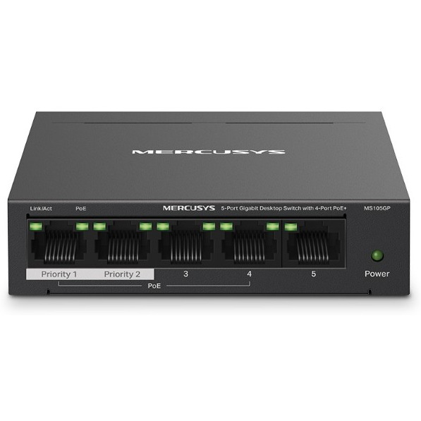 Przełącznik Mercusys 5-Port Gigabit Desktop Switch with 4-Port PoE+ PORT: 4× Gigabit PoE+ Ports, 1× Gigabit Non-PoE Port