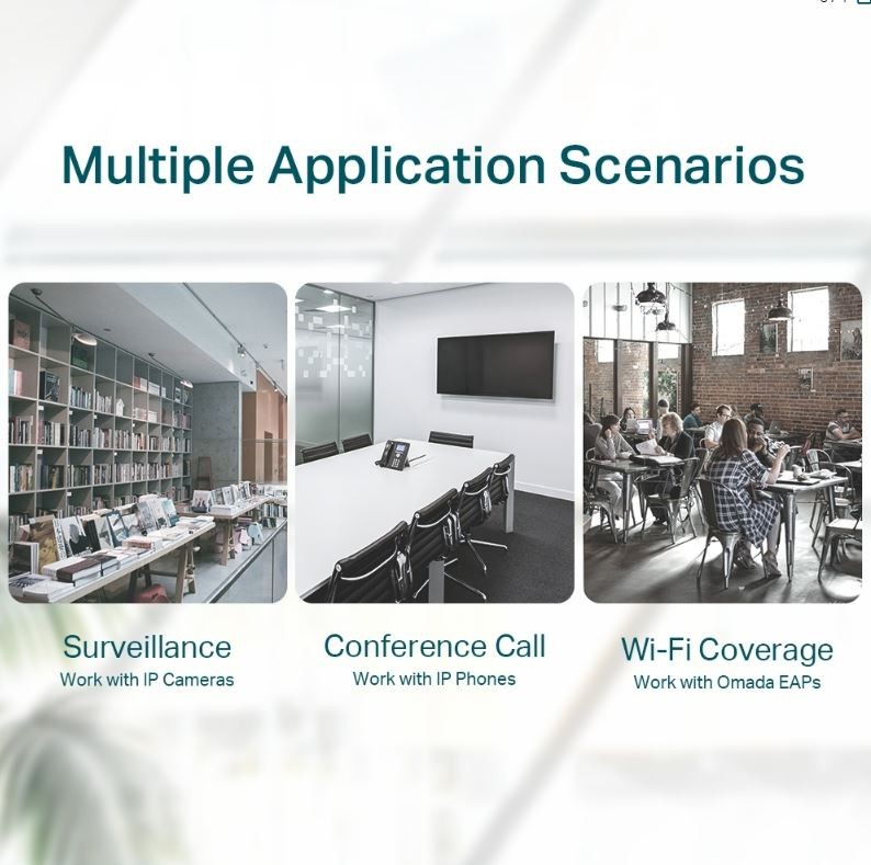 Zgodność ze standardem 802.3af/at PoE+ zapewnia do 30 W mocy na każdym porcie PoE. Łączny budżet mocy PoE wynoszący 120 W* dla 16 portów PoE+ otwiera szeroki zakres zastosowań, takich jak nadzór w biurach, akademikach i małych firmach. Jest w pełni kompatybilny z kamerami IP, punktami dostępowymi, telefonami IP, komputerami, drukarkami i nie tylko