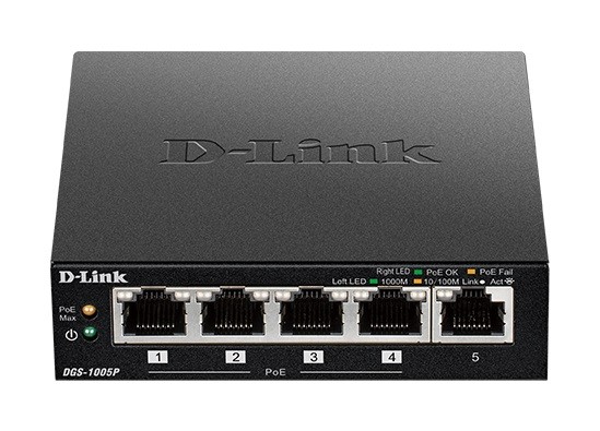 5portowy gigabitowy niezarządzalny przełącznik PoE DGS1005P umożliwia podłączenie do sieci urządzeń zgodnych z Power over Ethernet (PoE), takich jak punkty dostępowe, sieciowe kamery wideo oraz telefony IP. DGS1005P, który został zaprojektowany z myślą o użytkownikach domowych i małych firmach, charakteryzuje się niewielkimi rozmiarami i cichą pracą, dzięki czemu idealnie nadaje się do większości pokojów i biur.