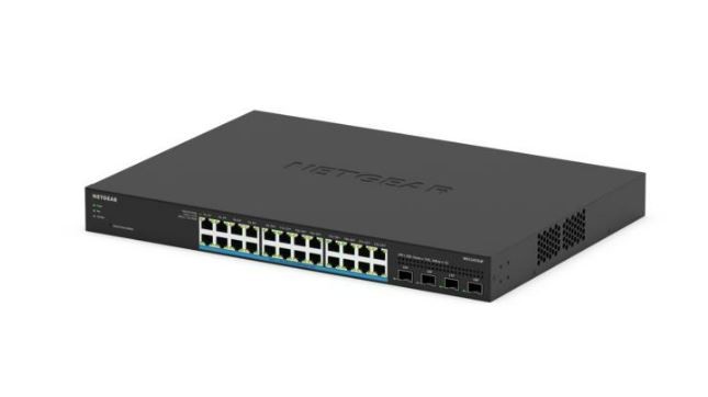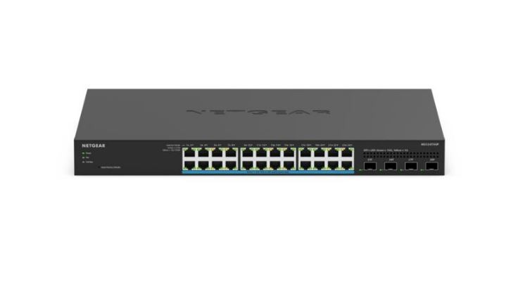 24-portowy, wielogigabitowy (2.5G) inteligentny przełącznik Ethernet Ultra60 PoE++ z 4 portami SFP+ 24 porty Multi-Gigabit 1G/2.5G z 4 portami 10G SFP+ 24 portów Ultra60 PoE++ z nieprzerwanym PoE Wysoka moc 720W PoE budżetu Energooszczędna sieć Ethernet zapewnia maksymalne oszczędności energii Cicha praca na biurku lub w stelażu Konfigurowalne funkcje sieciowe warstwy drugiej Zdalne zarządzanie chmurą NETGEAR Insight
