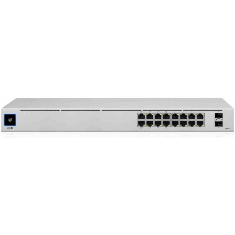 USW-16-POE to konfigurowalny przełącznik Gigabit Layer 2 z szesnastoma portami Gigabit Ethernet, w tym ośmioma portami PoE + z automatycznym wykrywaniem 802.3at oraz dwoma portami SFP. Zapewnia łącza Gigabit PoE do urządzeń Ethernet RJ45 oraz opcje łącza Gigabit Fibre do sieci przedsiębiorstwa.