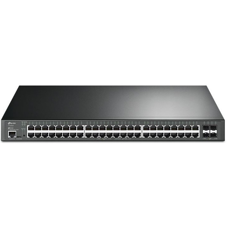 Przełącznik zarządzalny L2+ JetStream, 48 portów gigabitowych PoE+, 4 sloty SFP+ 10GE Błyskawiczna łączność 10G: 4× 10-cio Gigabitowe sloty SFP+ zapewniają wysoką przepustowość i możliwości przełączania. Zasilanie PoE+ o łącznej mocy 500 W: Stwórz optymalną topologię sieci dzięki 48 gigabitowym portom 802.3af/at PoE+. Scentralizowane zarządzanie: Zarządzanie jest niezwykle wygodne dzięki dostępowi z chmury oraz łatwej w użytkowaniu aplikacji Omada. Niezawodne funkcje L2 i L2+:: Wsparcie dla kompletnej linii funkcji L2 i L2+ włączając Statyczny router, QoS klasy przemysłowej, IGMP Snooping i wiele innych. Silne strategie zabezpieczeń: Ochronę sieci LAN zapewniają zintegrowane funkcje takie jak: wiązanie IP-MAC-Port Binding, ACL, Port Security, i uwierzytelnianie 802.1X. Zarządzanie: Web, CLI (Port konsolowy, Telnet, SSH), SNMP, RMON i Dual Image dają duże możliwości zarządzania
