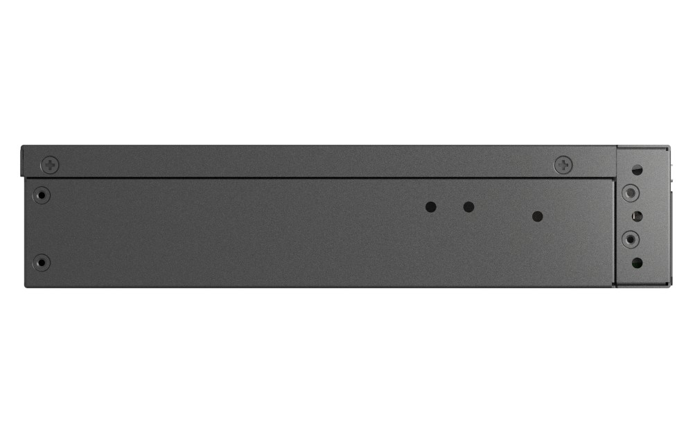 Dzięki kompaktowej, metalowej obudowie, która optymalizuje chłodzenie, model QSW-M3216R-8S8T zapewnia stabilne i niezawodne działanie nawet w przypadku pełnego obciążenia. Wyświetlanie bieżącego stanu systemu ułatwiają trzy diody LED na przednim panelu.