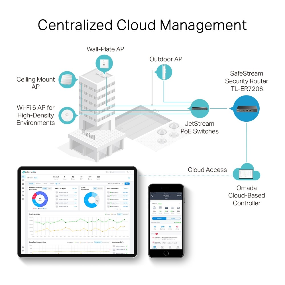 Urządzeniem TL-ER7206, czyli bramą sieciową w pełni zintegrowaną z platformą Omada SDN, można kontrolować centralnie i zdalnie z dowolnego miejsca i o dowolnej porze. Do dyspozycji jest także strona konfiguracyjna oraz dedykowana aplikacja, aby zarządzanie urządzeniem było jeszcze wygodniejsze.
