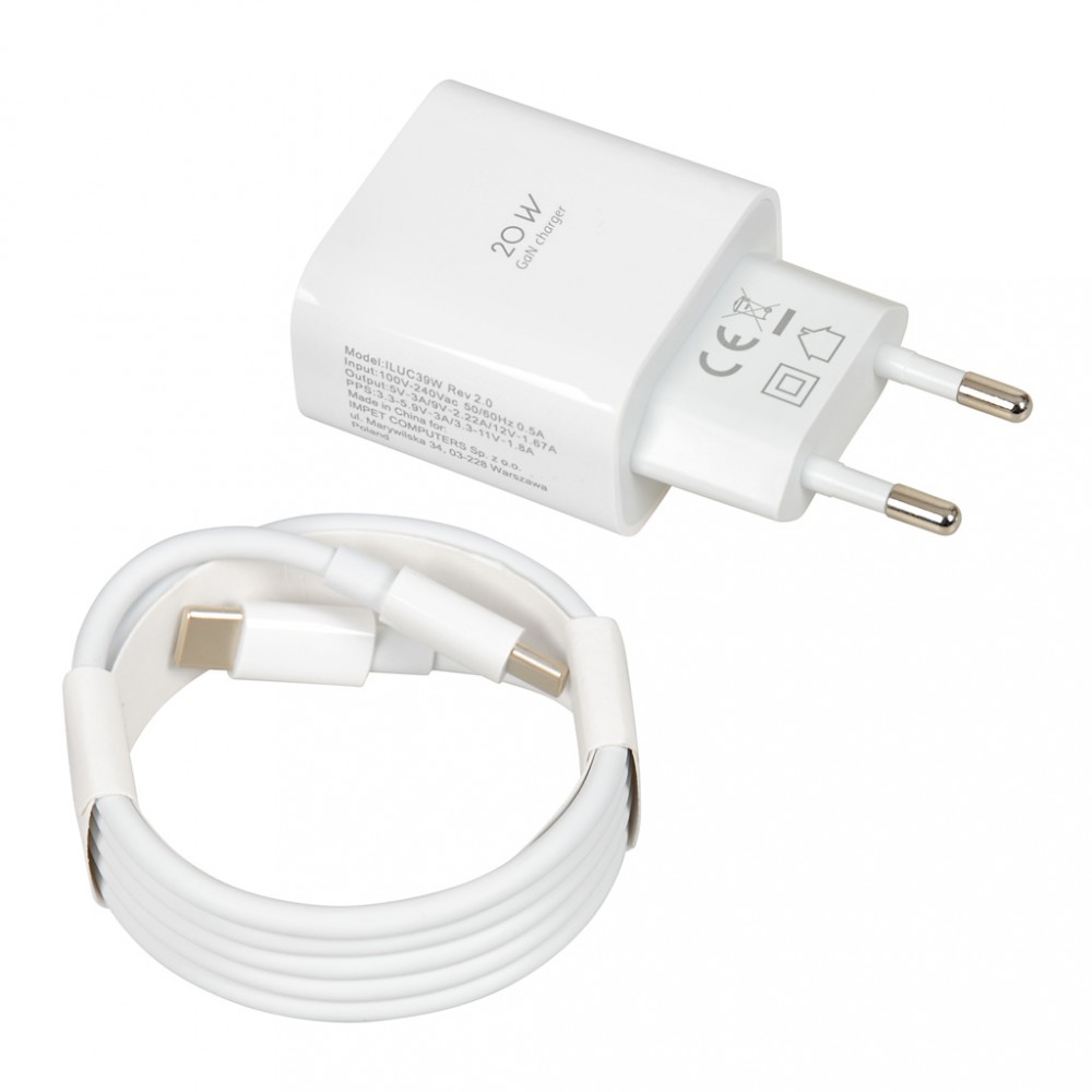 Pozostałe parametry: Kod producenta: ILUC39W Wejście: 90-260 ~ 50 / 60Hz 0,5A Wyjście PD: 5V 3A, 9V 2,25A, 12V 1,67A Wyjście QC: 5V-3A, 9V-2A, 12V-1.5A Ilość gniazd ładowania USB: 1 port USB: Typ C W zestawie: Kabel USB-C 1 m Ilość w kartonie zbiorczym: 100 szt. Wymiary kartonu zbiorczego: 34x26x43 cm