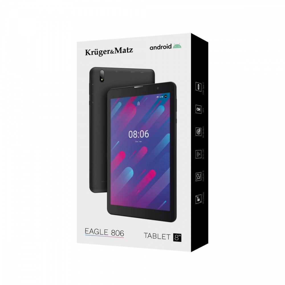To, co zwraca uwagę w tablecie EAGLE 806, to umieszczone w obudowie dwa głośniki, każdy o mocy 1 W. Dzięki nim oglądanie filmów czy słuchanie muzyki będzie niezwykle przyjemne, a 8 tablet Kruger&Matz stanie się Twoim niezastąpionym towarzyszem