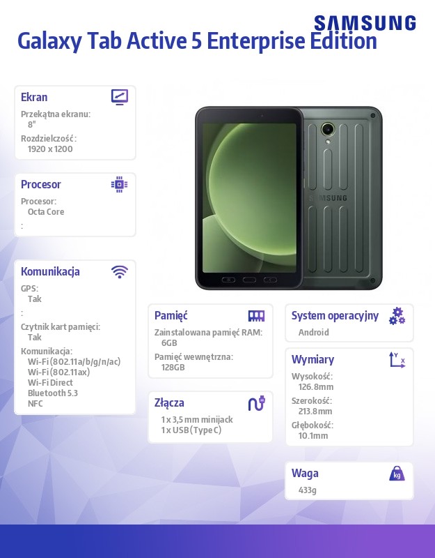 Tablet Galaxy Tab Active 5 8 cali Wifi 6/128GB Enterprise Edition zielony