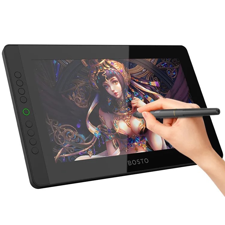 Tablet graficzny BOSTO BT-13HDK-T to tablet z ekranem LCD. To urządzenie przeznaczone do tworzenia grafik cyfrowych. Przydaje się także podczas nauki, robienia notatek, prowadzenia prezentacji czy wykładów. Jak sama nazwa wskazuje tablet posiada wyświetlacz. Efekty pracy są widoczne pod ręką na ekranie tabletu oraz komputera. Tablet do pracy potrzebuje ciągłego podłączenia do komputera.