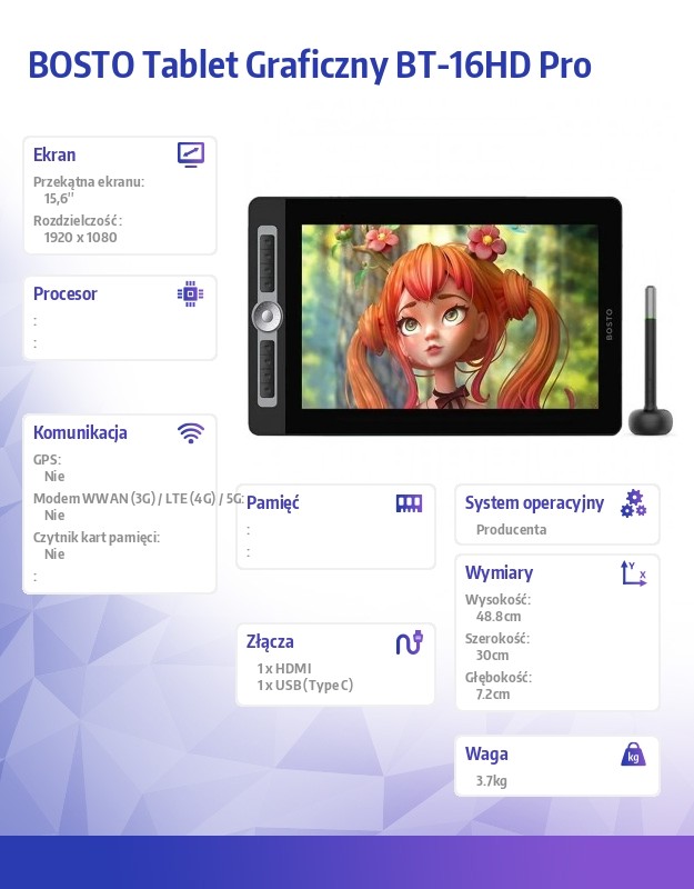 BOSTO Tablet Graficzny BT-16HD Pro