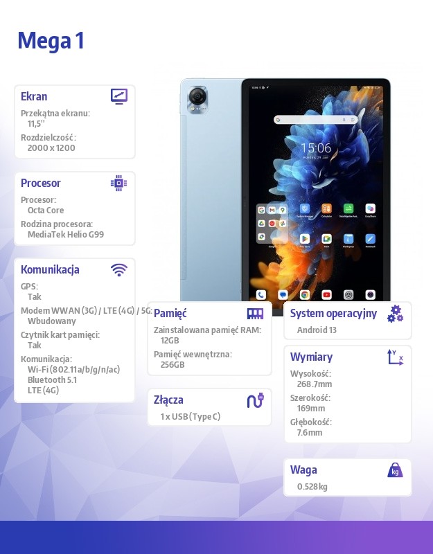 Tablet Mega 1 12/256GB 8800 mAh 11.5 cala niebieski