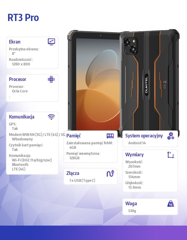 Tablet RT3 Pro 4G 8 cal 4/128GB pomarańczowy