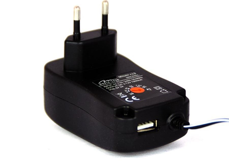 - 7 napięć: 3; 4,5; 5; 6; 7,5; 9; 12V przełączanych bezpiecznym pokrętłem