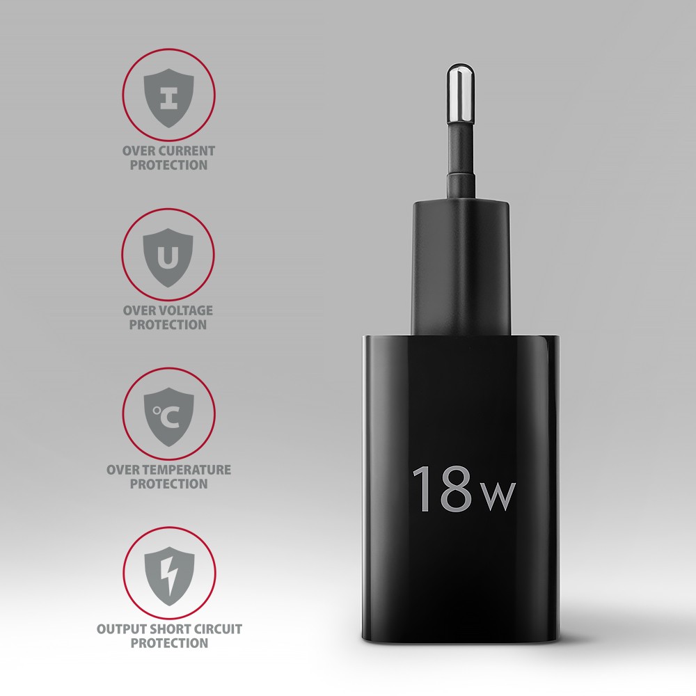 ACU-QC18 Ładowarka sieciowa QC 18W, 1x port USB-A, QC3.0/AFC/FCP/SMART Czarna